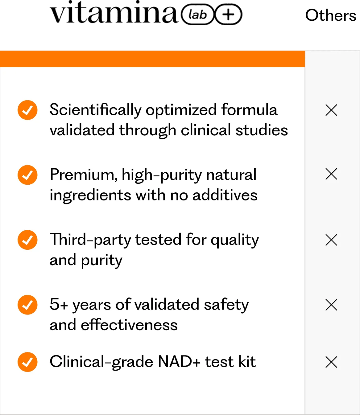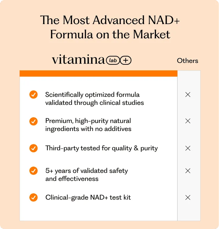Every ingredient in Vitamina Lab NAD+ is backed by cutting-edge research and third-party tested for purity and potency.