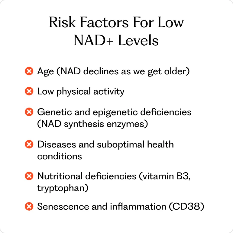 NMN (Nicotinamide Mononucleotide) and NR (Nicotinamide Riboside) are both precursors to boost your NAD+ levels.