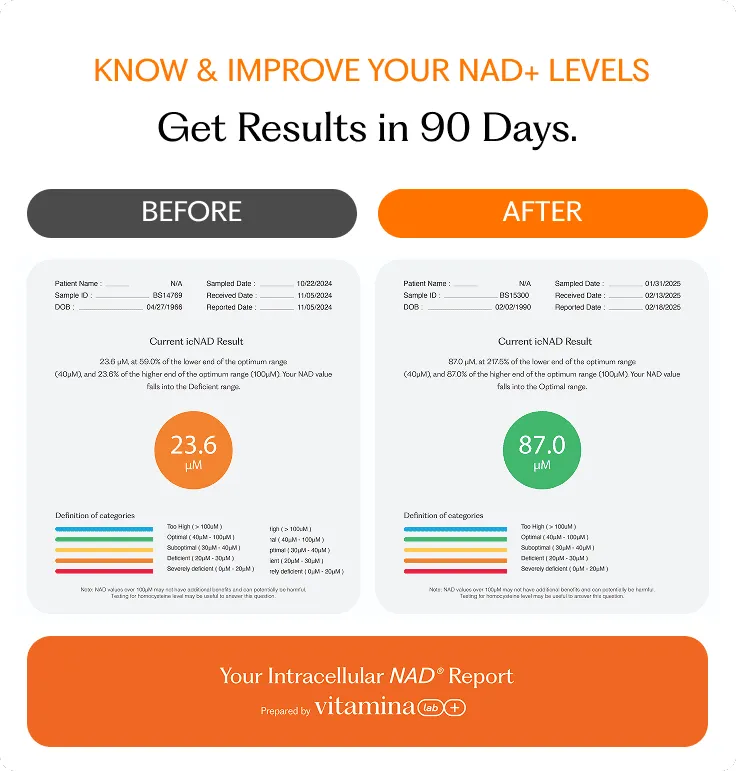 NOTE: Results may vary, but consistency is key! To maximize benefits, pair Vitamina Lab NAD+ with a balanced lifestyle and healthy habits.