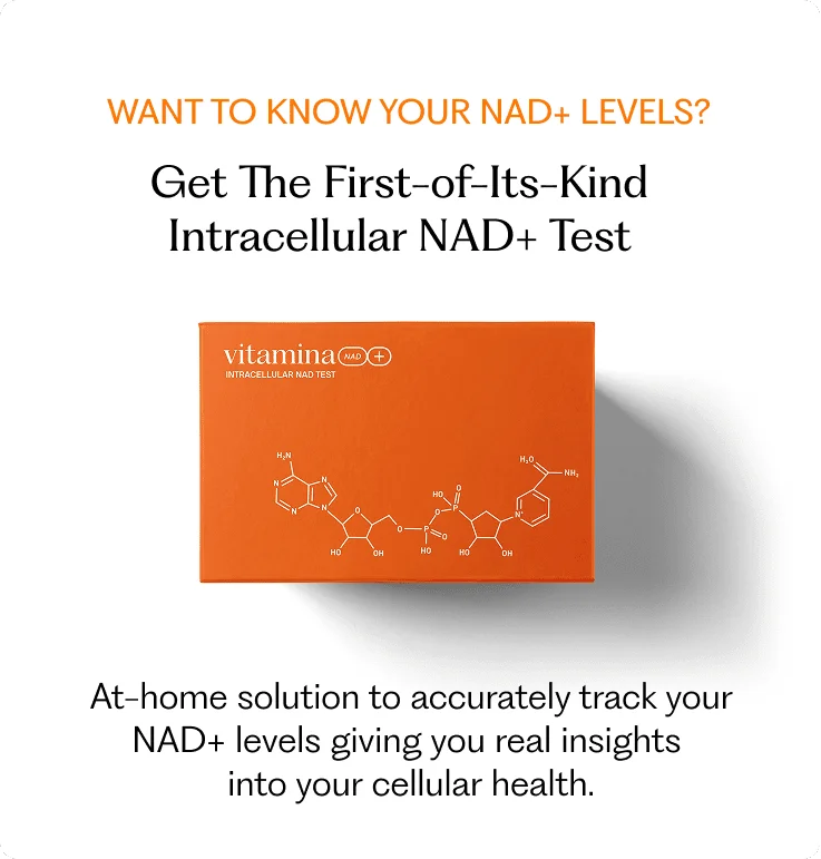 Vitamina Lab’s Intracellular NAD+ Test is the first at-home solution to accurately track your NAD+ levels, giving you real insights into your cellular health.